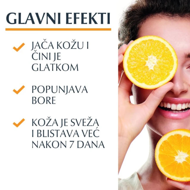 Eucerin Hyaluron-Filler Serum sa vitaminom C kombinuje visokokoncentrisanu hijaluronsku kiselinu sa vitaminom C, moćnim antioksidansom koji osvetljava ten i štiti kožu od slobodnih radikala. Serum pomaže u smanjenju vidljivosti finih linija i bora, jača otpornost kože i čini je svežom i blistavom. Lagana, brzo upijajuća tekstura omogućava jednostavnu primenu i idealna je za svakodnevnu negu.